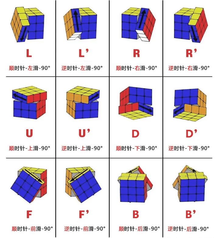 右手小鱼:(*注意:U2指魔方上侧顺时针转两次)