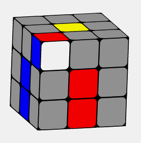 ②还原底部四个角,以右上角为基准,白色冲前(左)。白块在前(左)侧公式为:URU'R'(上右上'右'),动图演示如下: