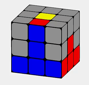 首先对齐顶部中间的颜色,然后分两种情况:①一种是顶部颜色在右边,公式:URU'R'U'F'UF(上右上'右'上'前'上前),动图演示如下: