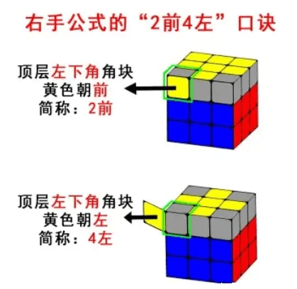 2前,指的是当顶部还剩2个方块时,黄色块朝前放置,然后使用右手小鱼公式。