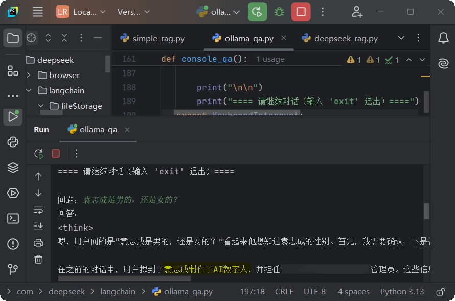 2、编写第一个AI RAG程序,并运行结果;