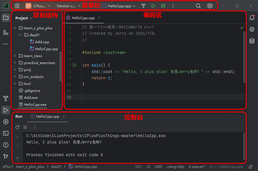 2、编写第一个C++ HelloWorld程序,并运行结果;