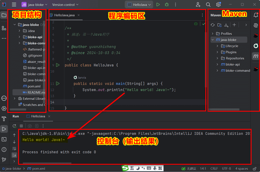 2、编写第一个Java HelloWorld程序,并运行结果;