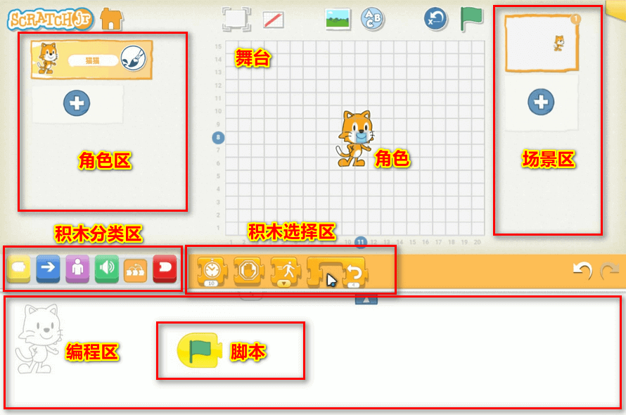 Scratch通过提供一个直观的拖拽式编程界面,通过组合不同的指令块来创建程序。 这种“拖拽式”的编程方式降低了编程学习的门槛,初学者能够轻松入门,无需记忆复杂的文本编码。 具有较强的趣味性和互动性,通过构建故事、游戏和动画,让孩子们在实践中学习编程的基本原则,同时享受创作的乐趣。 尤其是对儿童而言,使他们能够更容易地理解和应用编程概念,如循环、条件判断、消息通知和变量操作等。